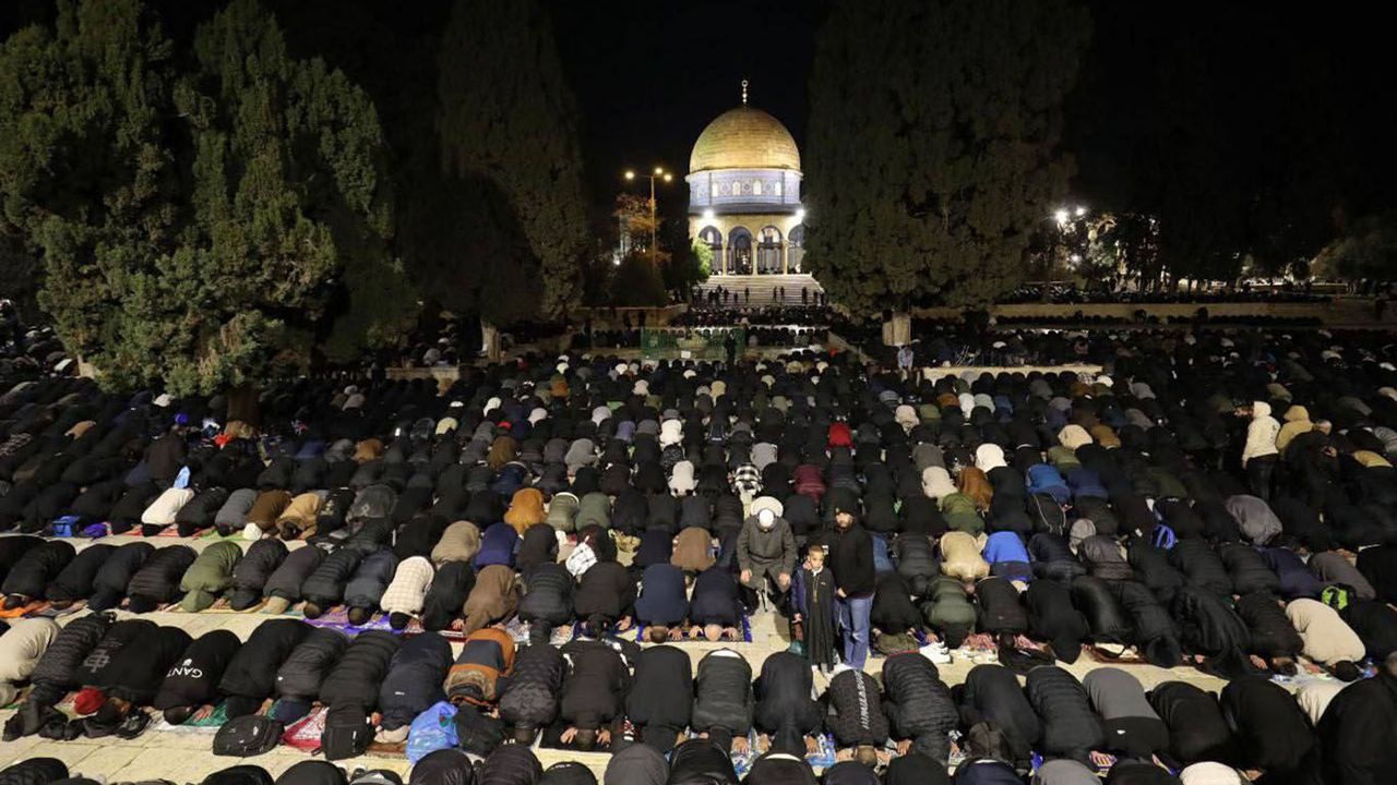 Yaklaşık 70 bin kişi, Mescid-i Aksa'da yatsı ve teravih namazını eda etti. Kudüs İslami Vakıflar Dairesi'nin verilerine göre müminler, tüm kısıtlamalara rağmen Aksa'nın avlularını doldurdu.
