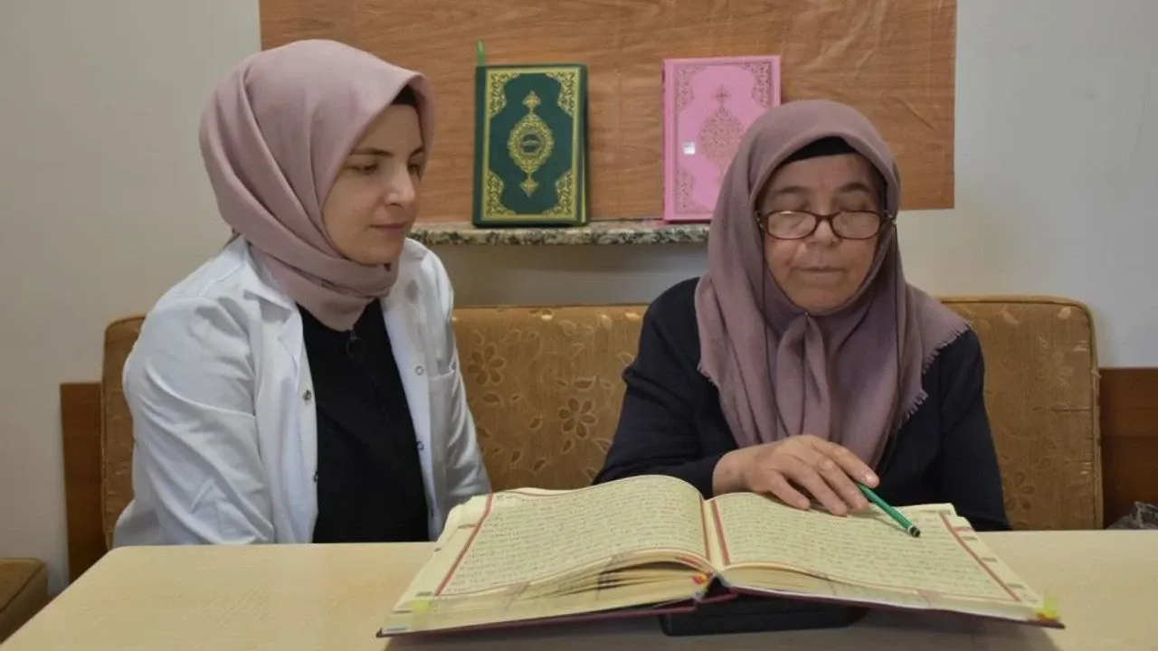 Azmi sayesinde Kur'an-ı Kerim okumayı öğrenen Turan, ilerleyen yaşına rağmen 4 yıldır düzenli olarak kursa devam ediyor ve azmiyle gençlere de örnek oluyor.