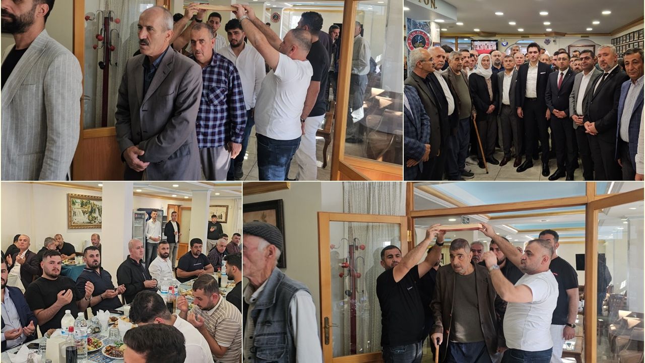 Nusaybin Aydınlar Konaklama Tesisleri’nde düzenlenen barış yemeğinde bir araya gelen iki aile, Bedrettin Durak ve Enver Mehmetoğlu’nun öncülüğünde Kur’an-ı Kerim altından geçip, salavat ve tekbirlerle barış yemini etti.