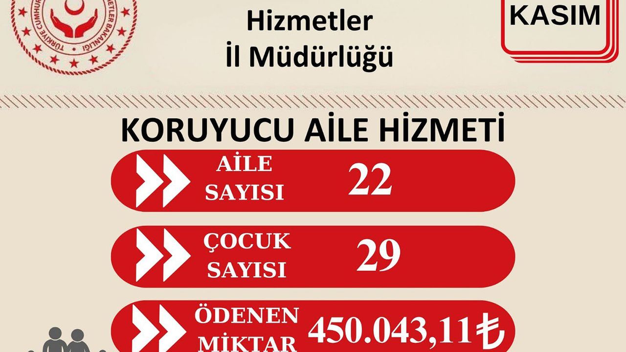 Sosyal hizmet modelleri doğrultusunda, kentte koruyucu aile olarak görev yapan 22 ailenin hesaplarına, yanlarında bakımını üstlendikleri 29 çocuk için toplam 450 bin TL aktarıldı.