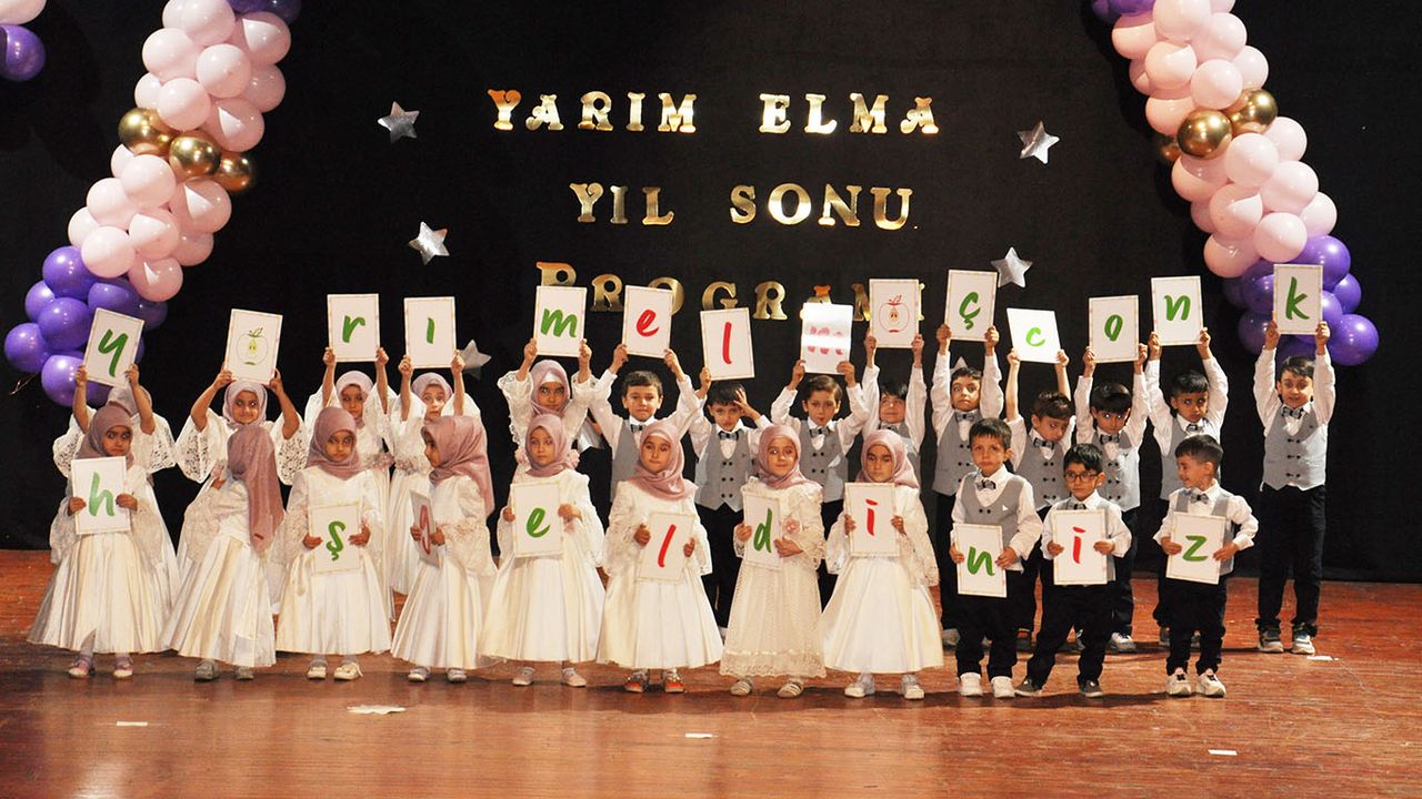 Batman'da 4-6 yaş grubu çocuklara yönelik temel dini bilgiler alanında eğitim veren Peygamber Sevdalıları Yarım Elma Çocuk Bahçesi, 26 kız ve erkek çocuk 9 aylık eğitim süreci sonrası düzenlenen programla çocuklara belge ve hediyelerini verdi.