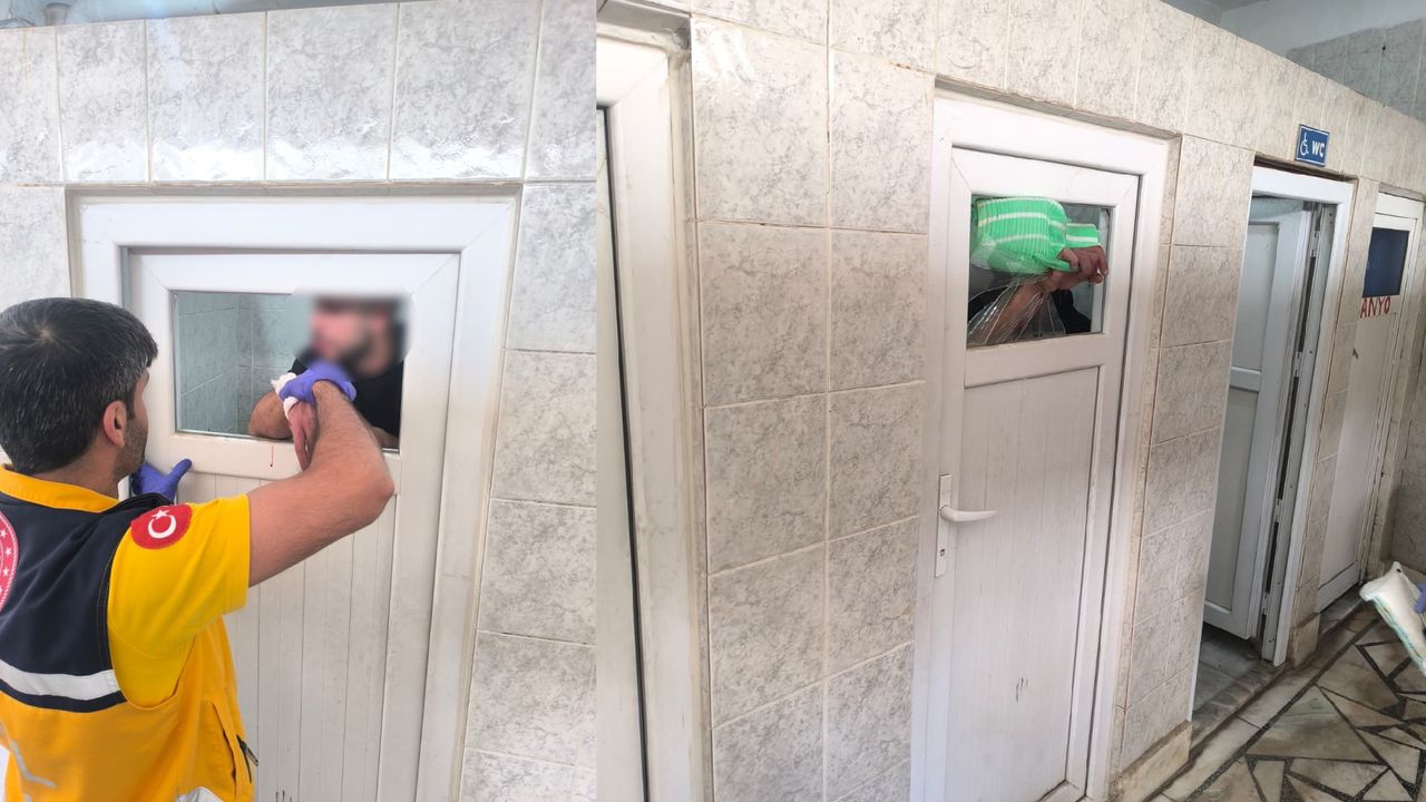 Uzun süre tuvalette kalan şahıs, kapının camına yumruk atıp bağırmaya başladı. Durumu fark eden cami cemaati, sağlık ve itfaiye ekiplerini çağırdı. Ekipler, kolu kanlar içerisinde camda asılı kalan şahsı güçlükle kurtardı. İlk müdahalesi yapılan kişi, olay yerinden uzaklaştı.