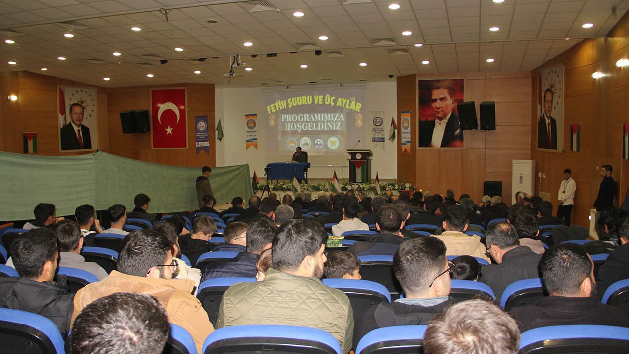 Kur’an-ı Kerim tilavetiyle başlayan program, fetih şuuru ve üç aylar temalı sinevizyon gösterimiyle devam etti. Konferansa Eğitimci-Yazar Özkan Yaman konuşmacı olarak katıldı.