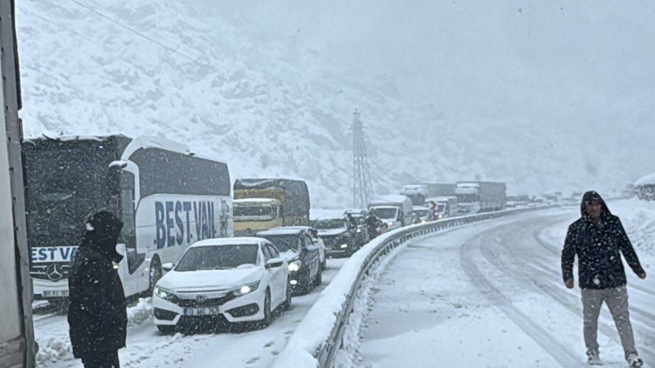 Sürücüler, kar yağışı nedeniyle zor anlar yaşarken, bölgede uzun araç kuyrukları oluştu. Bazı sürücüler araçlarından inerek yolun açılmasını bekledi.