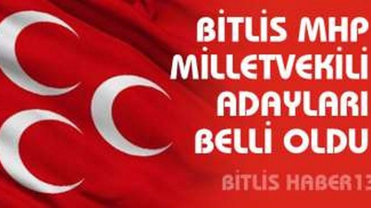 Milliyetçi Hareket Partisi (MHP) 1 Kasım Genel Seçimleri için milletvekili aday listesini açıkladı.<br /> <br /> MHP'nin aday listesine göre, 7 Haziran'da milletvekili olan 80 kişiden 72'si yerini korudu.<br /> <br /> Bitlis MHP Milletvekili Aday Listesi; <br /> <br /> 1- Gökçe ZENCİR<br /> <br /> 2- Faik ER<br /> <br /> 3- Murat AÇAR<br /> <br />