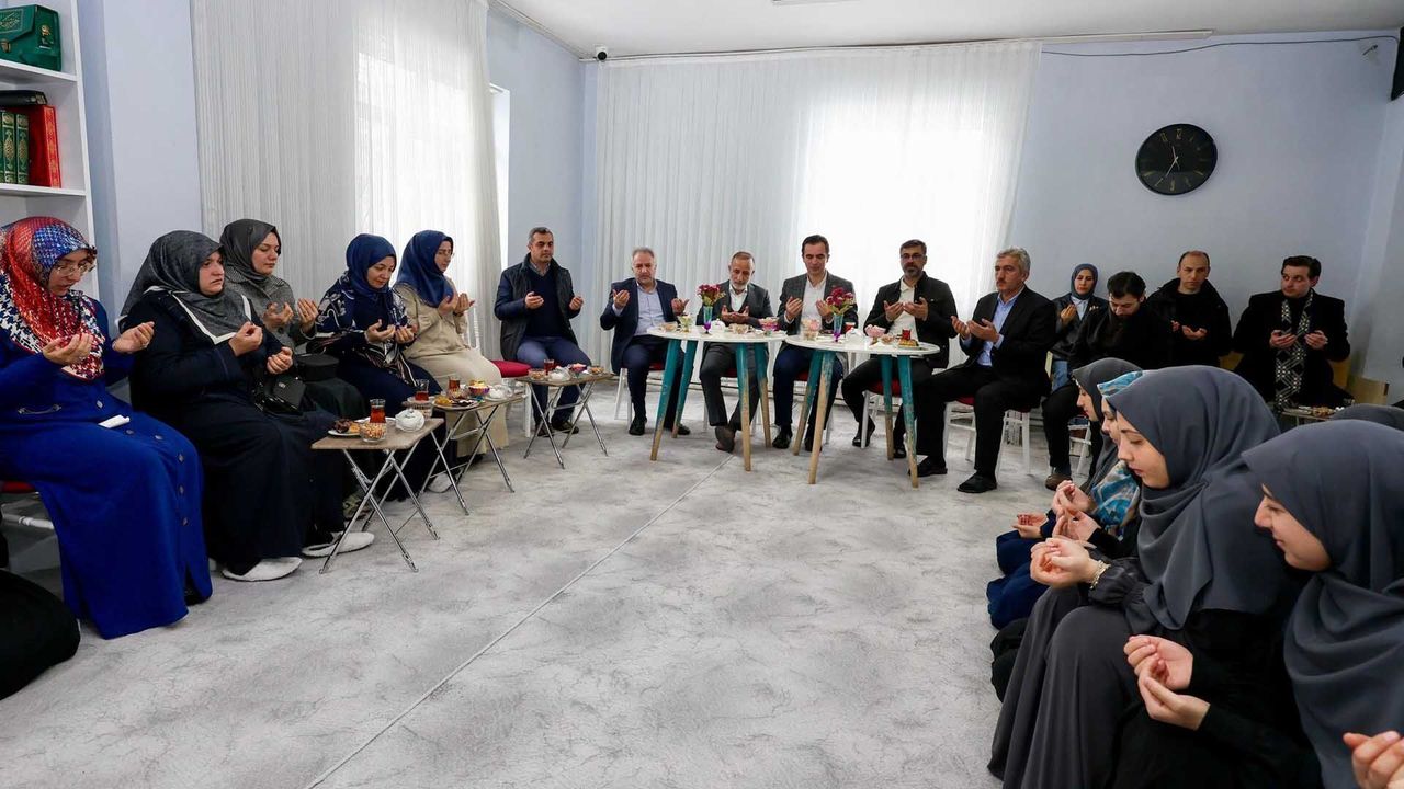 Ziyaret kapsamında öğrencilerin eğitim ortamlarını inceleyip eğitim programları hakkında yetkililerden bilgi alan protokol, hafızlık eğitimi gören öğrencilerle sohbet etti.
