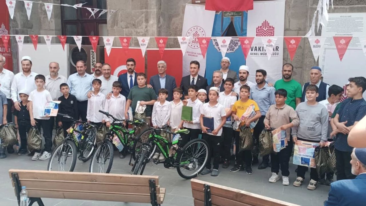 Yaz boyunca Kur’an-ı Kerim öğrenme konusunda gayret gösteren, kurslara düzenli olarak devam eden ve yapılan değerlendirmelerde başarı sağlayan öğrencilere bisiklet, tablet, kol saati gibi çeşitli hediyeler verildi.