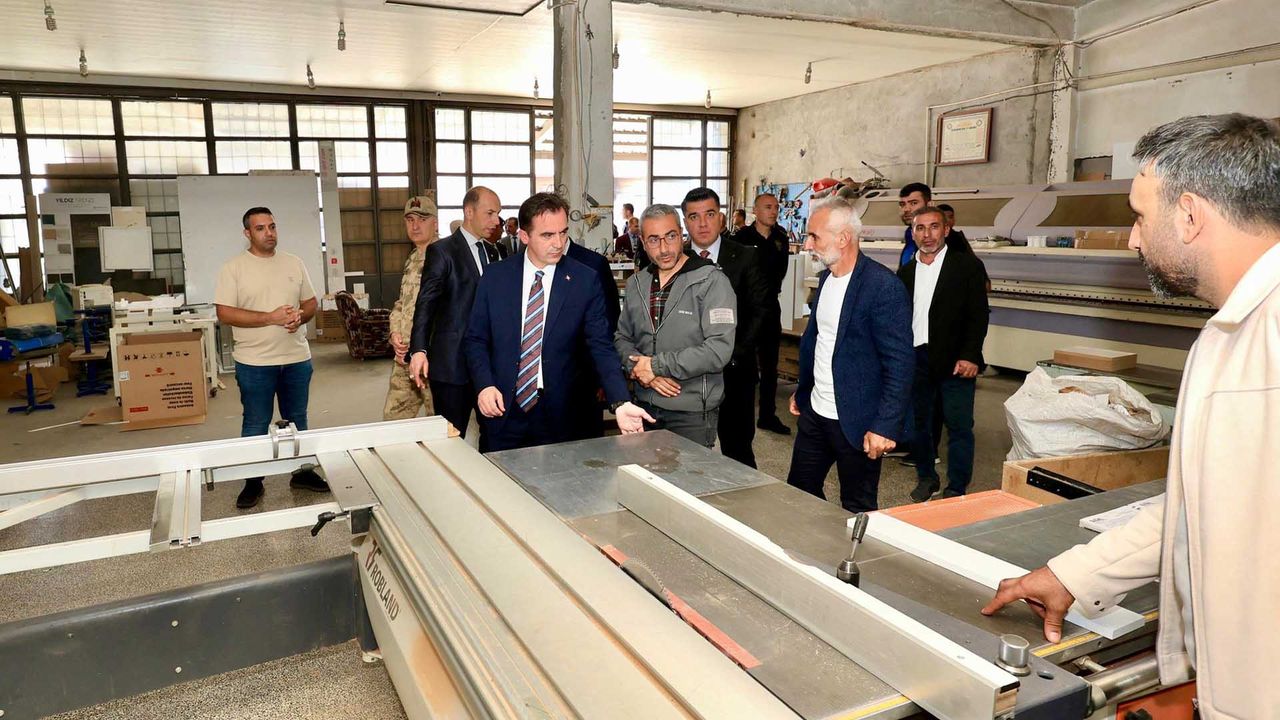 Bitlis Valisi Ahmet Karakaya, beraberindeki heyetle birlikte Tatvan Küçük Sanayi Sitesi’nde esnaf ziyaretlerinde bulundu. Ziyarette, sanayi sitesinde faaliyet gösteren iş yerlerini tek tek dolaşan Vali Karakaya, üretim süreçleri hakkında bilgi aldı ve esnafların taleplerini dinledi.