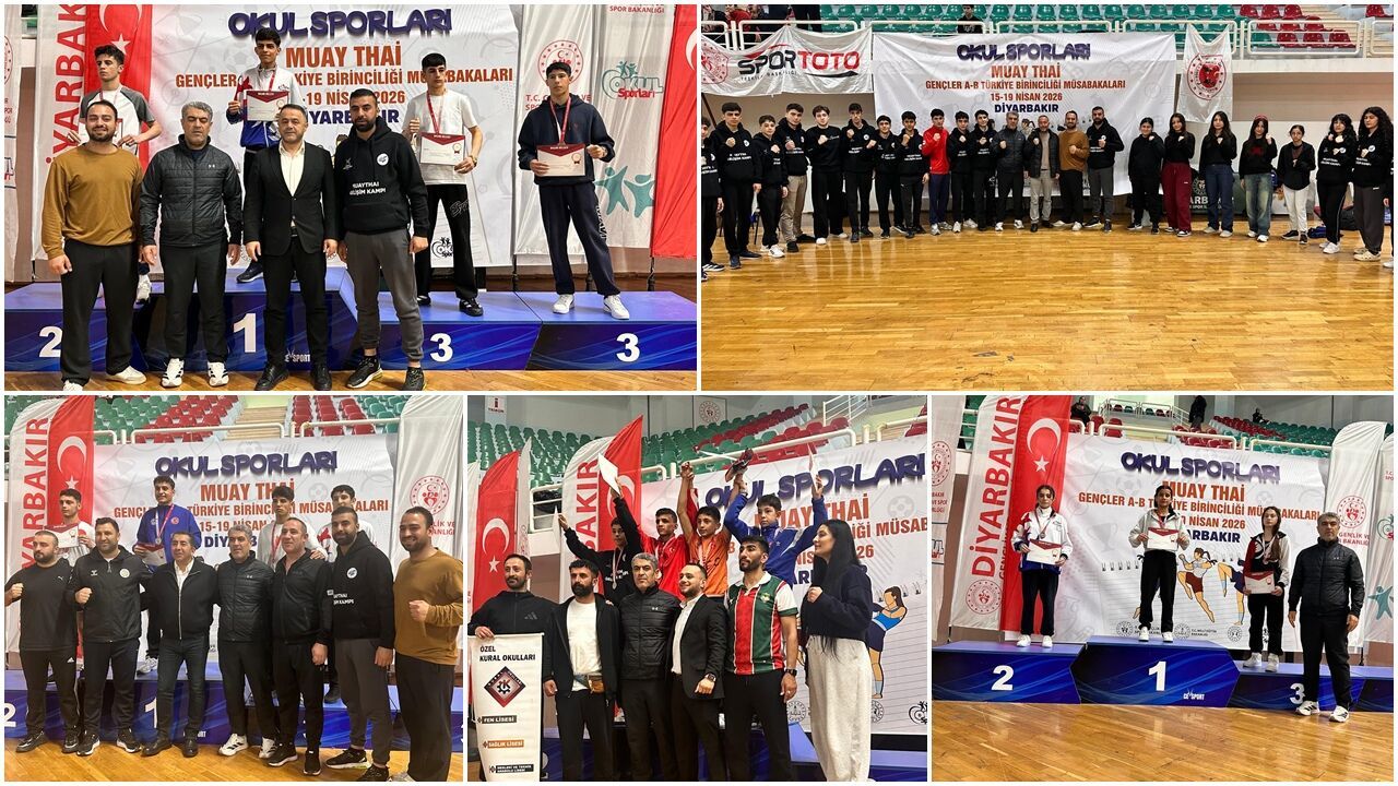 Diyarbakır’da 14-19 Nisan tarihleri arasında düzenlenen Okul Sporları Gençler Muaythai Türkiye Şampiyonası’nda Bitlisli sporcular önemli bir başarıya imza attı. Şampiyonada mücadele eden sporcular, 1 altın, 3 gümüş ve 5 bronz olmak üzere toplam 9 madalya kazanarak ili gururlandırdı.