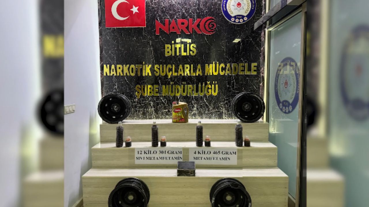 Yapılan aramada aracın jantları ile yağ karteri içerisine ve bagaj kısmına zulalanmış şekilde; 12 kilo 304 gram sıvı metamfetamin maddesi, 4 kilo 465 gram preslenmiş halde olmak üzere toplam 16 kilo 769 gram metamfetamin maddesi ele geçirildiği bildirildi.