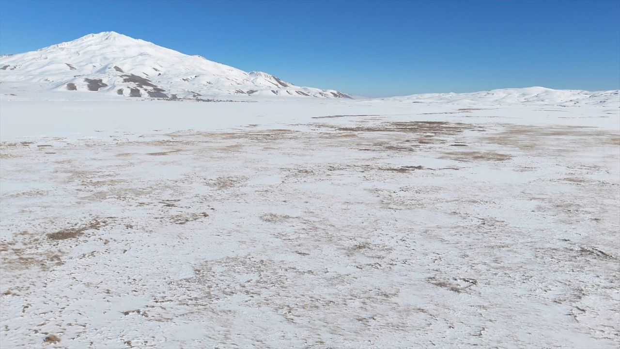 Bitlis’in Adilcevaz ilçesinde etkili olan yoğun soğuk hava, Cil Gölü’nün yüzeyini tamamen dondurdu. 4058 rakımlı Süphan Dağı’nın eteklerinde yer alan ve bölgenin saklı cennetlerinden biri olarak kabul edilen Cil Gölü, soğukların etkisiyle donmuş bir manzaraya büründü.