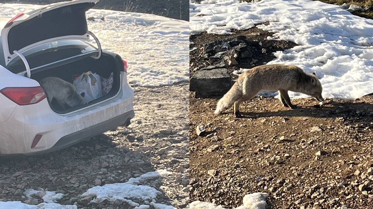 Yanlarında bulunan yiyecekleri tilkiyle paylaşarak karnını doyurmaya çalışan arkadaşlar, tilkinin dostane tavırlarını cep telefonu kamerasıyla kaydetti. Aç kalan tilki, daha fazla yiyecek bulabilmek için bagajı açık olan araca bile girerek yiyecek aradı.