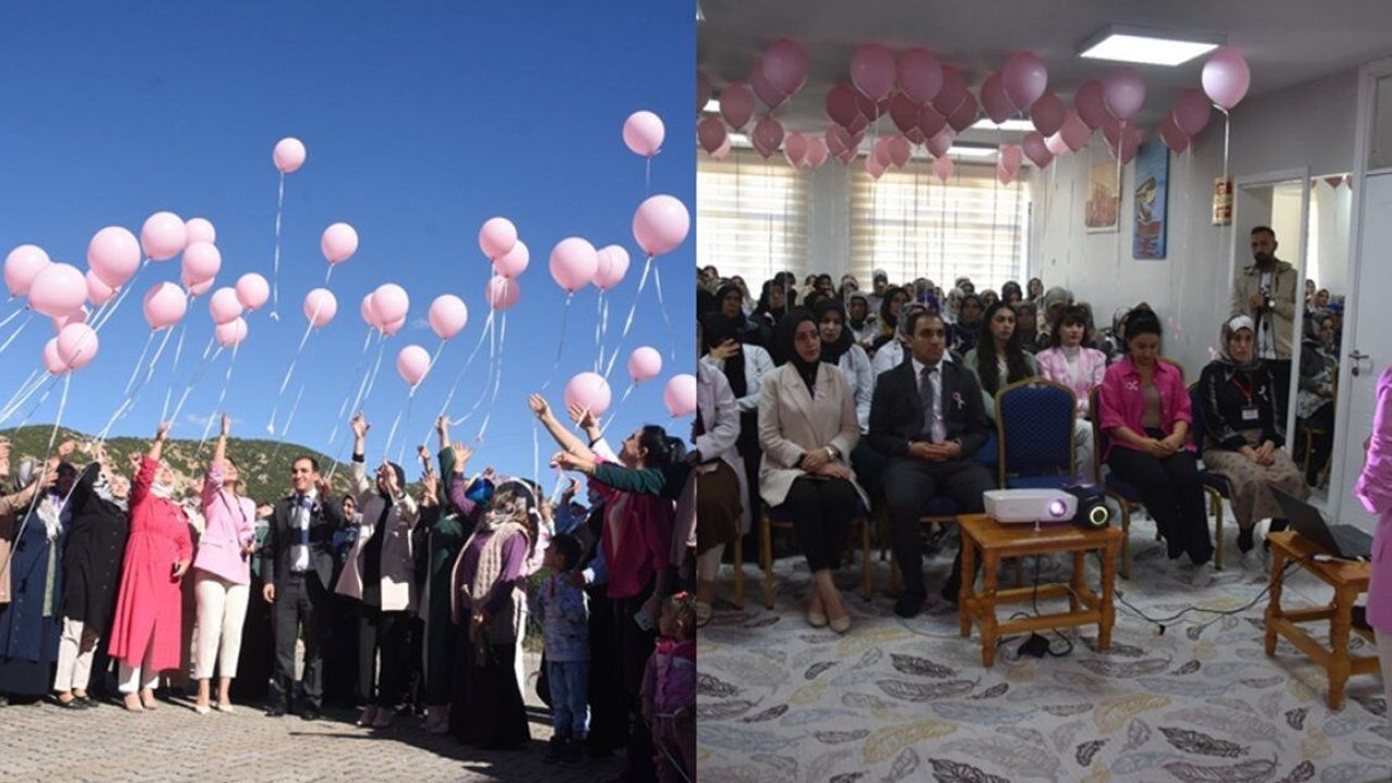 Konferansın ardından katılan kadınlardan gönüllü olanlara klinik muayenesi gerçekleştirilen etkinlikte kadınlar gökyüzüne pembe balon uçurdu.