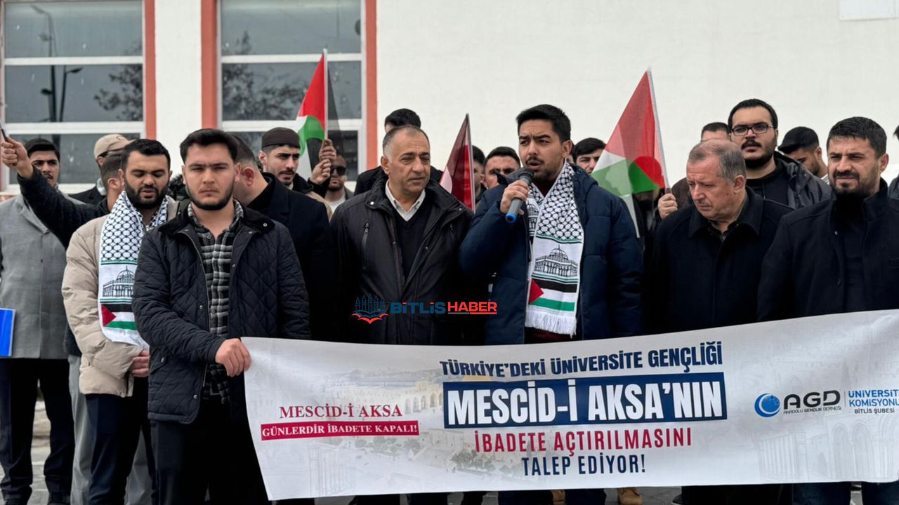"Bizler, Bitlis'ten tüm dünyaya ve haykırıyoruz: O kirli ellerinizi Aksa’nın üzerinden derhal çekin! Mescid-i Aksa derhal, hiçbir kısıtlama olmaksızın ibadete açılmalıdır! Müslümanların mukaddesatına yönelen bu kuşatma derhal son bulmalı, siyonist terörün bu alçak planları başlarına geçirilmelidir! Hiç kimse şunu unutmasın: Mescid-i Aksa yalnız değildir! Onu unutanlara, ona sırt çevirenlere ve o mübarek taşların yerinden oynamasına göz yumanlara inat, burada nöbet bekleyen bir gençlik vardır! Eğer bugün gereken irade ortaya konulmazsa; yarın dökülecek her damla kanın ve yıkılacak her duvarın vebali, susanların ve korkakça oyalananların boynunda kalacaktır. Bizler; susmayacağız, unutmayacağız ve bu kutsal kavgadan asla geri adım atmayacağız! Mescid-i Aksa tam anlamıyla özgür olana, o mübarek topraklar işgalcilerden temizlenene ve siyonistlerin yıkım hayalleri mezara gömülene dek mücadelemiz artarak sürecektir! İnanıyoruz ve biliyoruz ki; zafer sabredenlerindir; Kudüs yeniden özgür olacak, Mescid-i Aksa yeniden izzetin ve tevhidin kalesi haline gelecektir"
