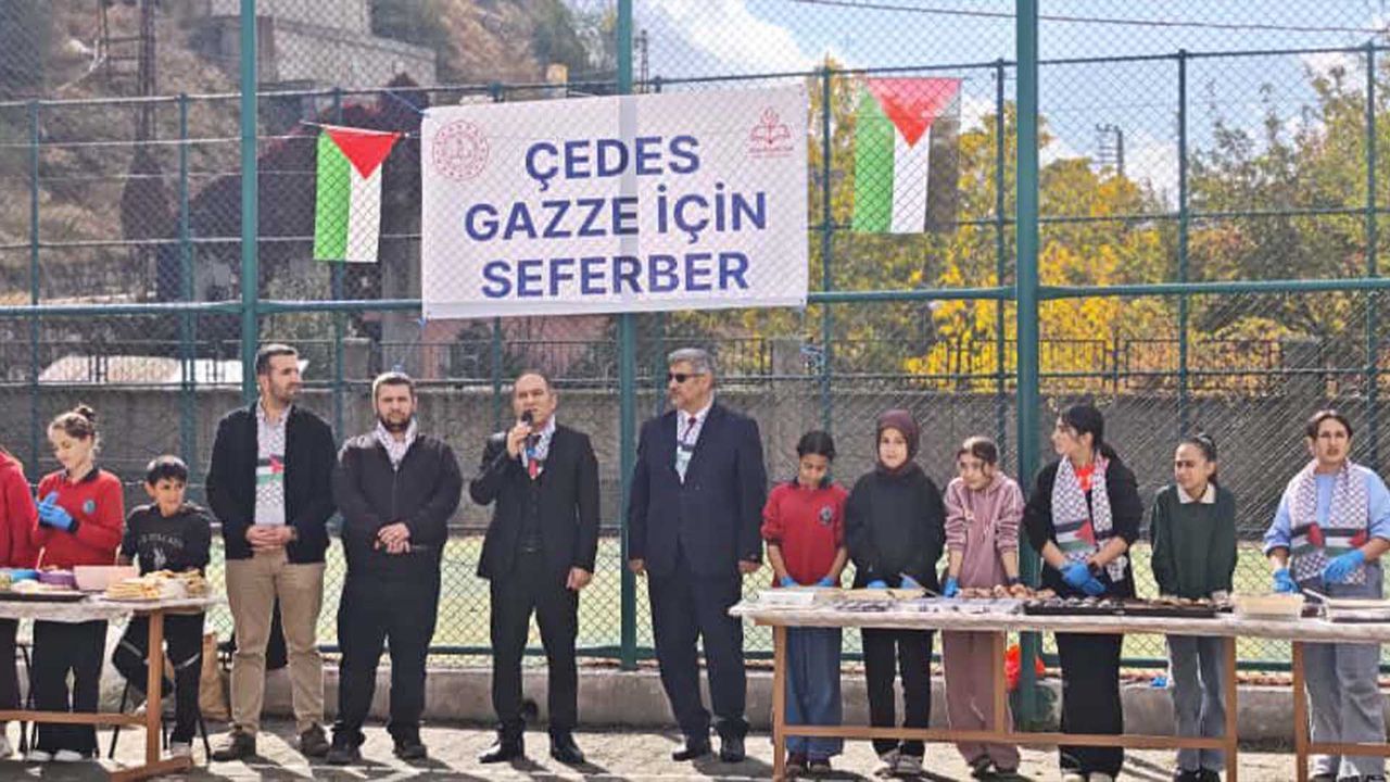 “ÇEDES - Gazze İçin Seferber” temasıyla düzenlenen kermeste öğrenciler, evlerde hazırladıkları pasta, börek ve çeşitli yiyecekleri satışa sunarak dayanışma ve yardımseverliğin güzel bir örneğini sergiledi.