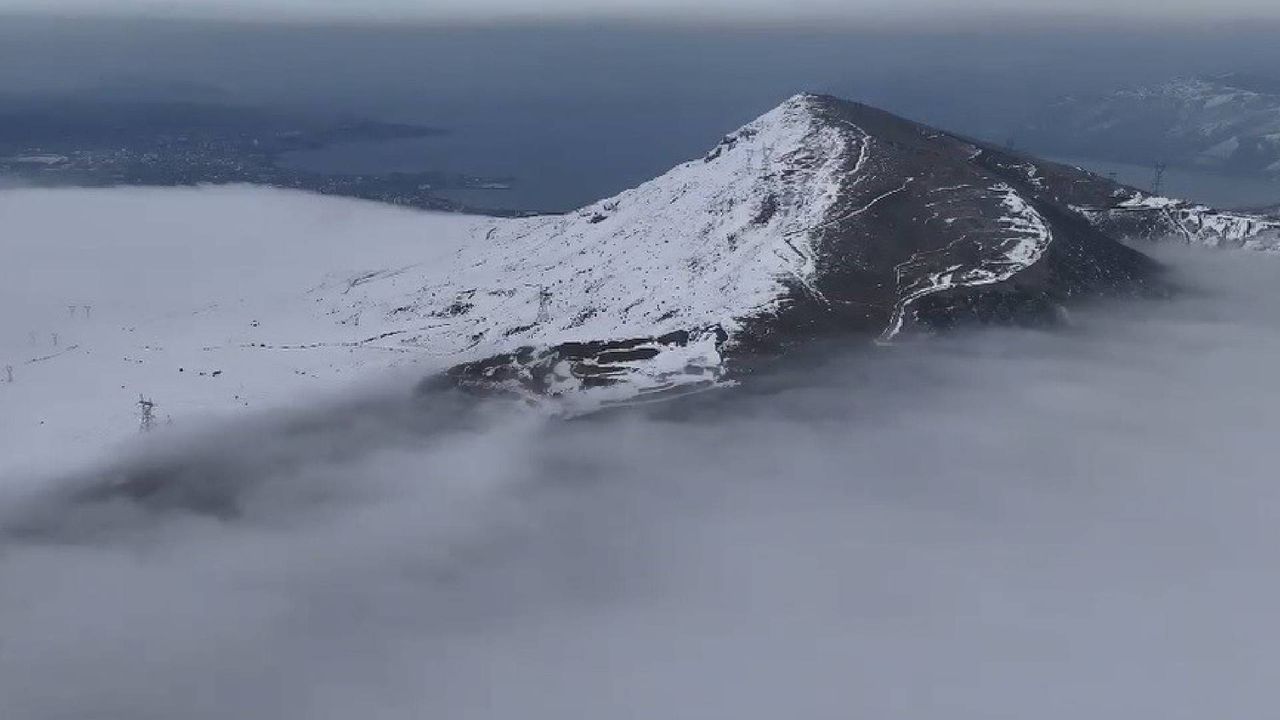 Dağların ve yerleşim alanlarının üzerine çöken kalın sis tabakası, kartpostallık görüntüler oluşturdu. Dronla yaklaşık 500 metre yükseklikten çekilen görüntülerde, sisin tamamen örttüğü yerleşim alanları ve dağlar arasında oluşan beyaz deniz manzarası göz kamaştırdı. Sis tabakasının güneş ışıklarıyla birleştiği anlarda oluşan yansımalar, izleyenleri hayran bırakıyor.