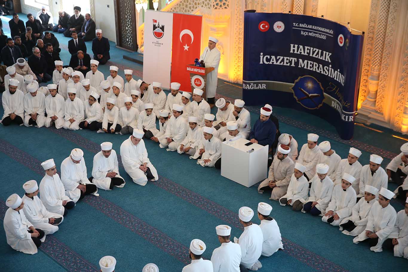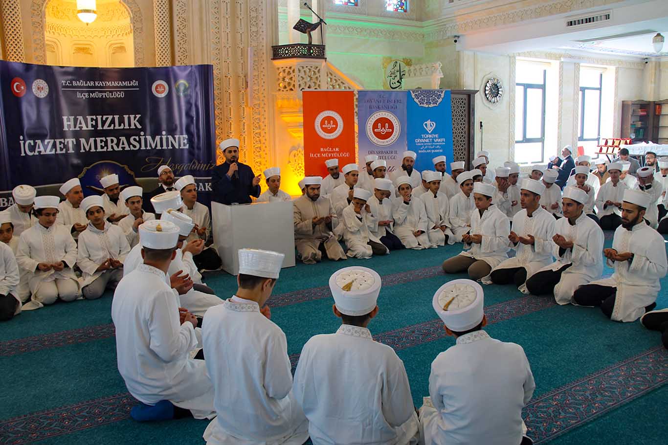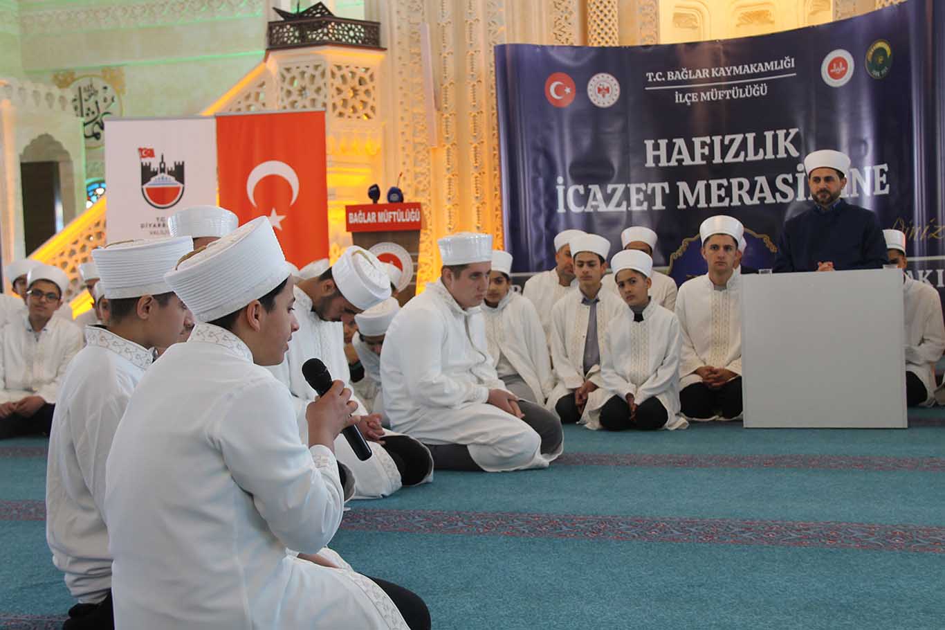 Programda selamlama konuşması gerçekleştiren Diyarbakır İl Müftüsü Celal Büyük, "Bağlar İlçe Müftülüğümüz bünyesinde eğitim öğretime devam etmekte olan Kur'an kurslarımızda hafızlıklarını tamamlamış 74 hafızımızın icazet merasimi için bu güzel mabette bir araya gelmiş bulunmaktayız. Sözlerimin başında hafızlarımızı tebrik ediyorum. Hafızlarımızın üzerinde emeği bulunan hocalarımızı, bu Kur'an kurslarımızın iaşesini, ibatesini katkı sağlayan hayırsever kardeşlerimizi ve bu Kur'an kurslarımızı sevk ve idare eden ilçe müftümüzü tebrik ediyoruz." dedi.