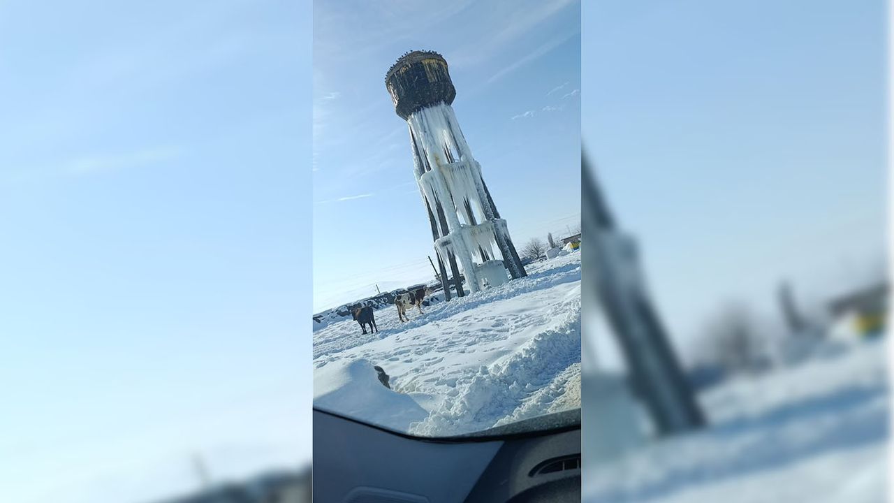 Mahallede bulunan su kulesi, aşırı soğuklar nedeniyle tamamen buzla kaplanarak adeta buzdan yapılmış bir yapıyı andırdı.