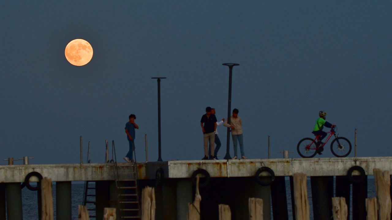 İskelede dolunay manzarasında bisiklet süren Hasan Hüseyin Erkoç, "Ben iskelede bisiklet sürerken dolunay çıktı ve çok güzel bir manzara oluştu" dedi.