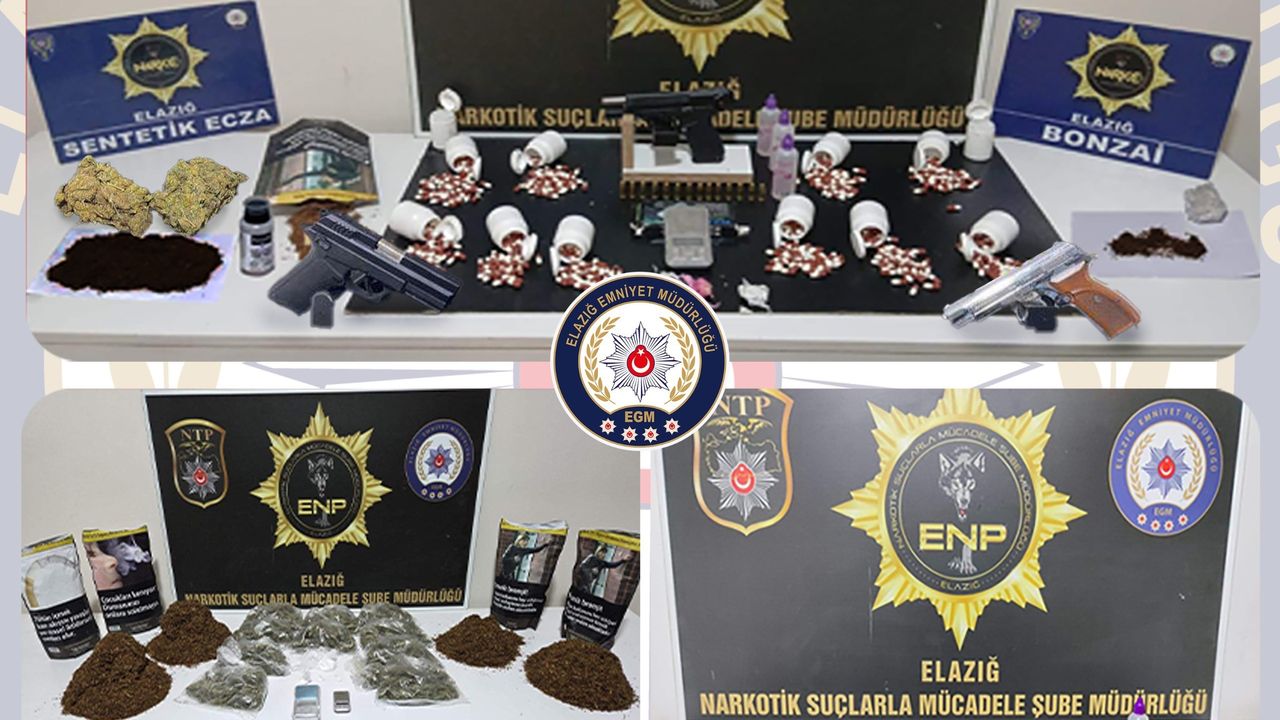 Elazığ’da uyuşturucuyla mücadele kapsamında polis ekiplerinin yürüttüğü çalışmalar aralıksız sürüyor. Elazığ Cumhuriyet Başsavcılığı koordinesinde İl Emniyet Müdürlüğü Narkotik Suçlarla Mücadele ve Asayiş Şube Müdürlüğü ekiplerince son bir ay içerisinde uyuşturucu madde kullanan ve ticaretini yapan şahıslara yönelik kapsamlı operasyonlar gerçekleştirildi.