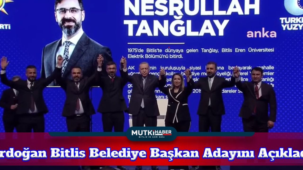 26 ilin belediye başkan adaylarını açıklayan Erdoğan, Bitlis’in belediye başkan adayının şu anki mevcut belediye başkanı Nesrullah Tanğlay ile yola devam edeceklerini açıkladı.