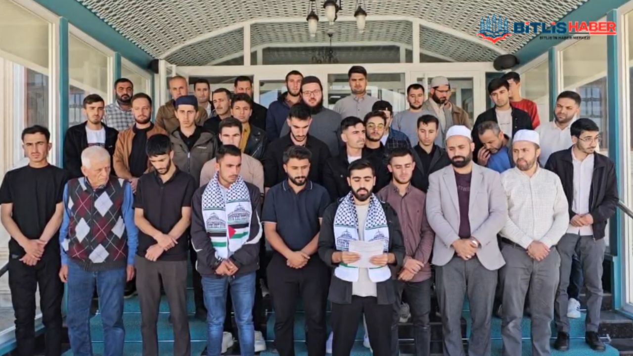 “Biz üniversite öğrencileri olarak İsrail'in işlediği soykırım ve insanlığa karşı insanlığa karşı suçların durdurulmasını, Kudüs ve Gazze başta olmak üzere işgalcilerin mazlum coğrafyadan çekilmesini soykırımda kullanılan silah ve teknolojik desteğin kesilmesini uluslararası kuruluşların ve özel Özellikle İslam ülkelerinin etkin ve somut adımlar atmasını, siyonist işgalcileri destekleyen her türü ürünün boykot edilmesinin desteklenmesini talep ediyoruz.”