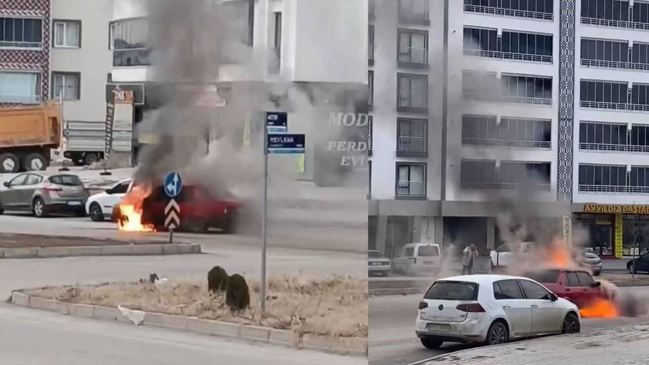 Elazığ’ın Ulukent Mahallesi Mevlana Caddesi’nde, seyir halindeki bir Fiat Tofaş marka araç, aniden alev aldı. Plakası öğrenilemeyen araç, yangını fark eden sürücü tarafından yol kenarına çekilerek itfaiye ekiplerine haber verildi.
