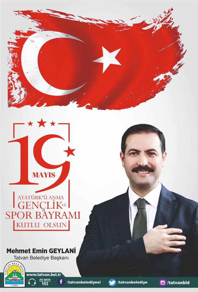 Tatvan Belediye Başkanı Mehmet Emin Geylani: Tatvan Belediye Başkanı Mehmet Emin Geylani , 19 Mayıs Atatürk'ü Anma Gençlik ve Spor Bayramı nedeniyle bir mesaj yayımladı. Başkan Geylani, mesajında gençliğin bayramını kutladı. Tatvan Belediye Başkanı Mehmet Emin Geylani , 19 Mayıs Atatürk'ü Anma Gençlik ve Spor Bayramı nedeniyle bir mesaj yayımladı. Başkan Geylani, yayımladığı mesajında şunları söyledi,” 19 Mayıs 1919’da Tarihe gömülmek istenen bir millet, Mustafa Kemal Atatürk önderliğinde Samsun’da başlattığı bağımsızlık mücadelesi ile küllerinden tekrar doğmuş; vatan ve bayrak sevgisini, özgür yaşama kararlılığını tüm dünyaya ilan etmiştir. Ecdadımızın bu kurtuluş mücadelesi ve bağımsızlık aşkı başka milletlerin bağımsızlık mücadelesine de örnek olmuştur. O günlerden bu günlere ülkemiz üzerinde oynanmak istenen oyunları bu millet, bu gençlik birlik ve beraberlik içinde kalarak bozmuştur. Milli ve manevi değerlere haiz, vatanına, bayrağına, devletine ve milletine bağlı gençliğimiz olduğu müddetçe de oynanmak istenen oyunlar hep bozulacaktır. 19 Mayıs’ın, Gençlik ve Spor Bayramı olarak ilan edilmesi, gençlerimize duyulan güvenin bir göstergesidir. Bu düşüncelerle 19 Mayıs Atatürk’ü Anma, Gençlik ve Spor Bayramını kutluyor, tüm gençlerimizi, tüm vatandaşlarımızı saygı ve sevgiyle selamlıyorum."