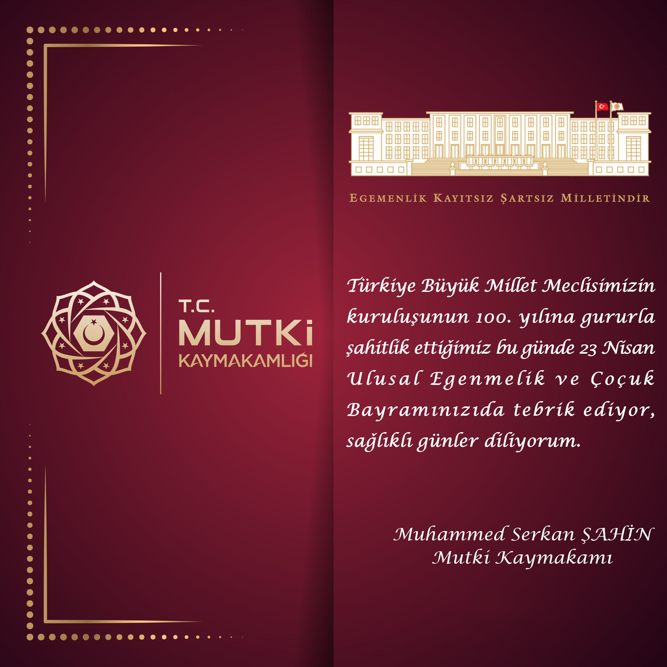 Mutki Kaymakamı Muhammed Serkan Şahin: 23 Nisan Ulusal Egemenlik ve Çocuk Bayramı kutlu olsun.