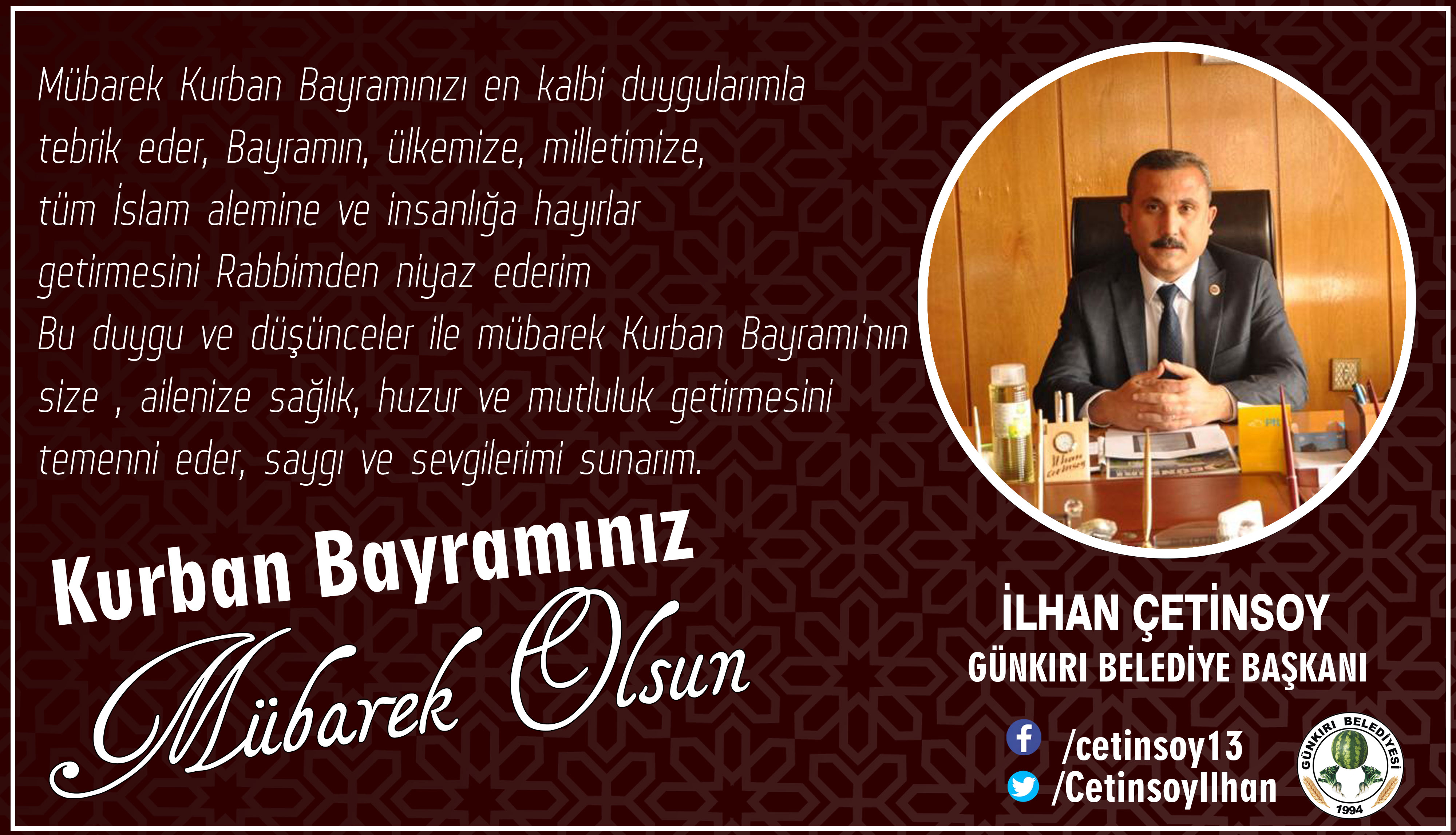 Güroymak Kaymakamı ve Belediye Başkan Vekili Muhammet Furkan Sancaktutar: Sevgili Güroymak’lı hemşerilerim; Sağlık Bakanlığının Ülke genelinde yayınladığı Corona Virüs ‘e karşı alınması gereken tedbirlere riayet edilmesi, virüsün ülke genelinde yayılımının önüne geçilmesi açısından kurallara uymamız ve gerekli hassasiyeti göstermemiz önem arz etmektedir. Ayrıca bu dönemde siz değerli vatandaşlarımız toplu bulunulan ortamlara girmemeleri, tokalaşmamaları ve yakın temastan kaçınmaları gerekmektedir. Bu süreçte endişeye kapılmaksızın alınan önlemlere uymak ve yetkili kurumlarca tavsiye edilen korunma yöntemlerini uygulamak hem bireysel sağlığımız hem de kamu sağlığı açısından büyük önem taşımaktadır. Koronavirüs ile mücadelede göstereceğiniz hassasiyet ve destek İçin şimdiden sizlere teşekkür ederim. Bayramlar, toplum olarak birlik ve beraberliğimizi daha da pekiştirdiğimiz, sevinçlerimizi ve mutluluğumuzu paylaştığımız özel günlerdir. Bir Kurban Bayramını daha idrak etmekte, bu mübarek günlerin rahmet ve bereketinde buluşmaktayız. Her türlü güzelliğin ve mutluluğun yaşandığı bayramlar eşin, dostun, akrabanın, hastaların ve büyüklerin hatırlandığı, muhtaçlara yardım elinin uzatıldığı, çocukların sevindirildiği, dargınlıkların giderildiği, küskünlerin barıştığı sevgi ve mağfiret günleridir. Kurban Bayramının insanlığa, ülkemize ve halkımıza barış, huzur ve mutluluk getirmesini diliyorum. Bu duygularla, tüm Güroymak halkının, mübarek Kurban Bayramını içtenlikle kutluyor, sağlık ve mutluluk içinde, nice huzurlu günlere hep birlikte ulaşmayı temenni ediyorum.