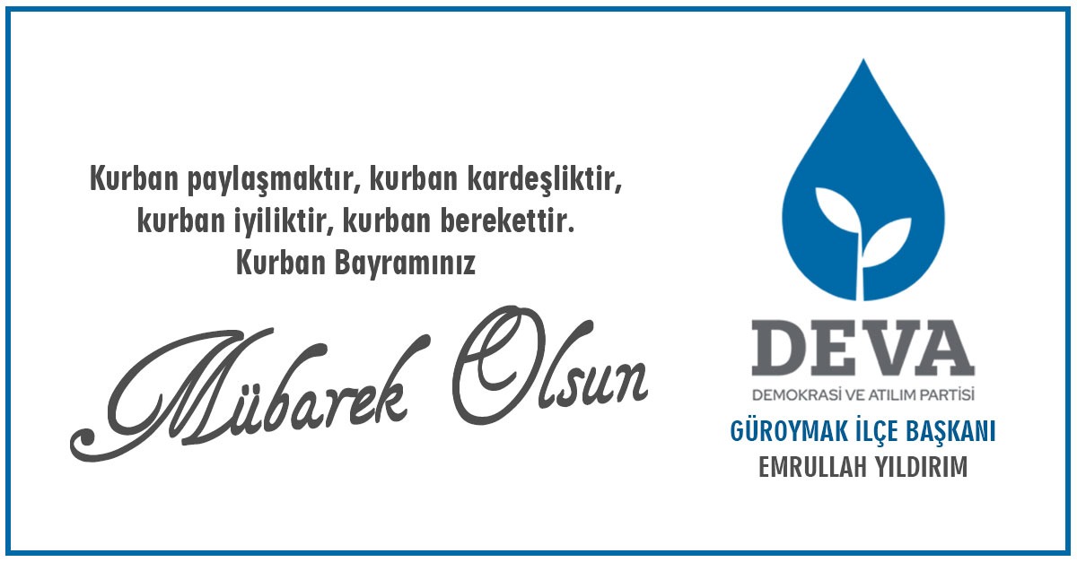 Güroymak AK Parti İlçe Başkanı Öztürk Uğiş: Kurban Bayramı'nın Tüm İnsanlığa, Ülkemize ve İlçemize Huzur, Mutluluk ve Bereket Getirmesini Diler, Sevdiklerinizle Birlikte Güzel Bir Bayram Geçirmeniz Dileğiyle Bayramınızı En İçten Duygularla Kutlarım.