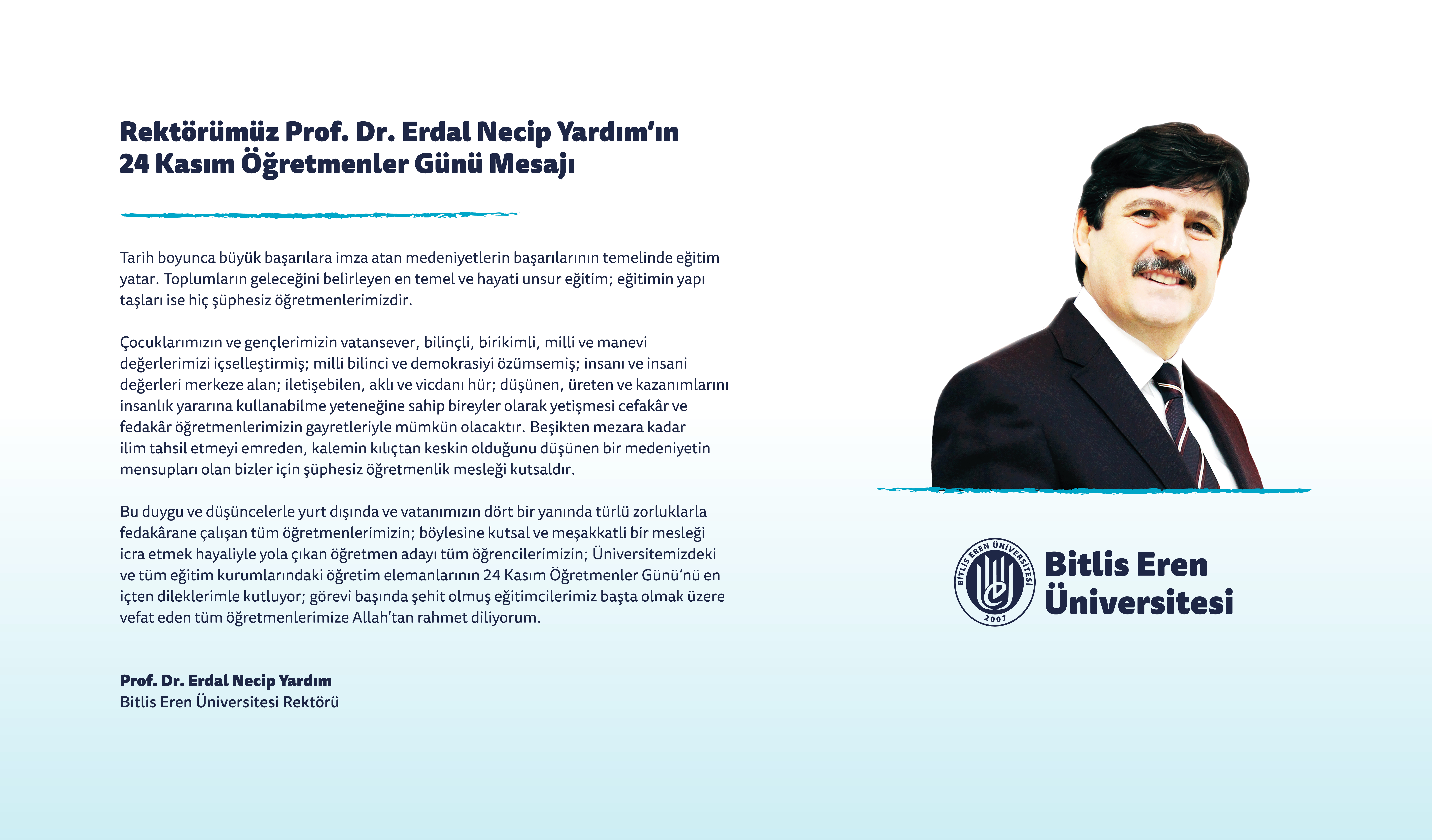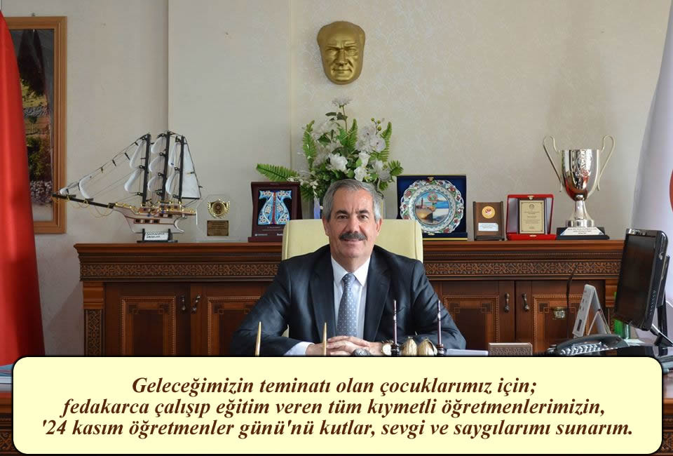 Geleceğimizin şekillenmesinde ana unsur olan öğretmenlerimiz, üstlendikleri misyonla gerek toplumsal ve gerekse bireysel bazda önemi, özeni ve saygıyı hak eden kıymetlerdir. Anne kucağından ayrılan çocuklarımızı şefkatle kucaklayıp, hayat denizine kulaç atarken, onların karşılaştıkları zorlukları aşan, doğru yolda yürümelerini sağlayan ve karanlık dehlizlerde onlara ışık olan sizlersiniz. Çocuklarımızın gelişmesinde, ülkesine, milletine, vatanına ve bayrağına bağlı, topluma faydalı birer birey olarak yetişmesinde sizlerin harcadığı emeği anlatmakta kelimelerin kifayetsiz kaldığını bilmenizi istiyorum. En zor şartlarda bile ülkemizi ve insanımızı aydınlık bir geleceğe taşımak adına gösterdiğiniz yüksek ideallerin yanı sıra ortaya koyduğunuz azim ve kararlılık her türlü takdire şayandır. Biz biliyoruz ki, öğretmenlik, aşk sevda ve fedakarlık demektir. Önce kalpleri imar ve inşa eden, sonra akla hitap eden siz öğretmenlerimizin, emekleri ve özverileri sayesinde milletimiz medeniyet yürüyüşünü azimle sürdürmektedir. Çağın istikametini doğru okuyacak nesiller sizlerin elinden çıktığı gibi, ülkemizin ve milletimizin geleceğini ilmek ilmek ören de yine sizlersiniz. Görev aşkınızın, sevdanızın ve fedakarlık duygunuzun daim olması temennisiyle, 24 Kasım Öğretmenler gününüzü en içten dileklerimle kutluyorum. Bu vesile ile; Başöğretmen Gazi Mustafa Kemal Atatürk başta olmak üzere, vefat eden ve şehit olan öğretmenlerimizi rahmet ve minnetle anıyor, tüm öğretmenlerimize aileleriyle birlikte sağlıklı, mutlu ve huzurlu bir ömür diliyorum.