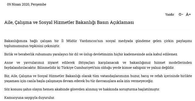 "Geber" yorumu yapan Aile ve Sosyal Hizmetler İl Müdür Yardımcısı görevden alındı