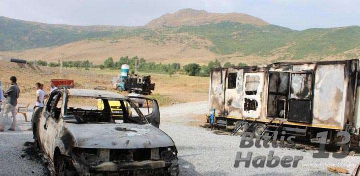 Güroymak'ta 3 araç ve 3 konteyner yakıldı