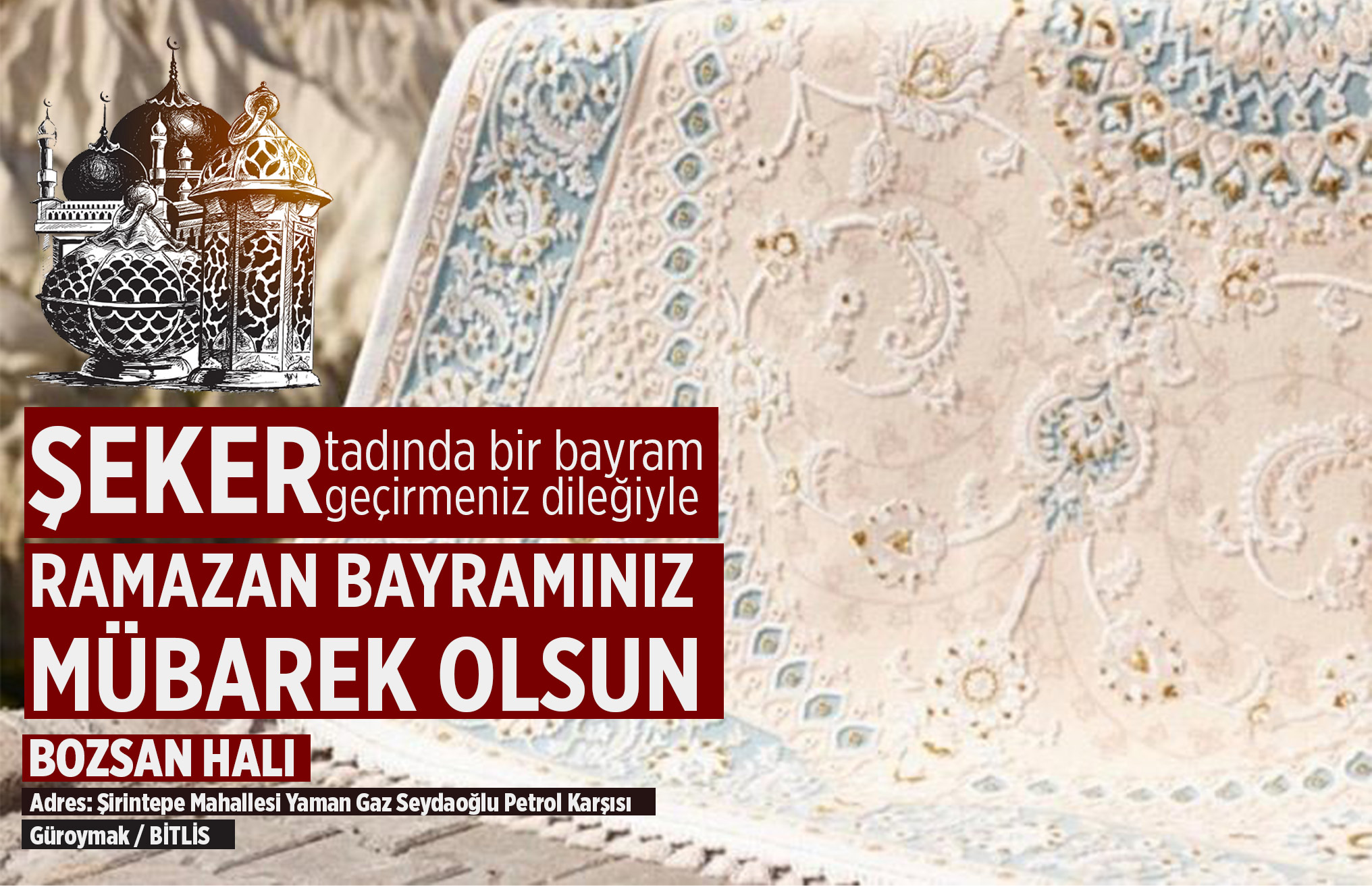 Bozsan Halı: Bir avuç dua, bir kucak sevgi, sıcak bir mesaj kapatır mesafeleri, birleştirir gönülleri, bir sıcak gülümseme, bir ufak hediye daha da yaklaştırır bizi birbirimize. Kalbiniz nur, eviniz huzur dolsun. Ramazan Bayramınız bereketli olsun!