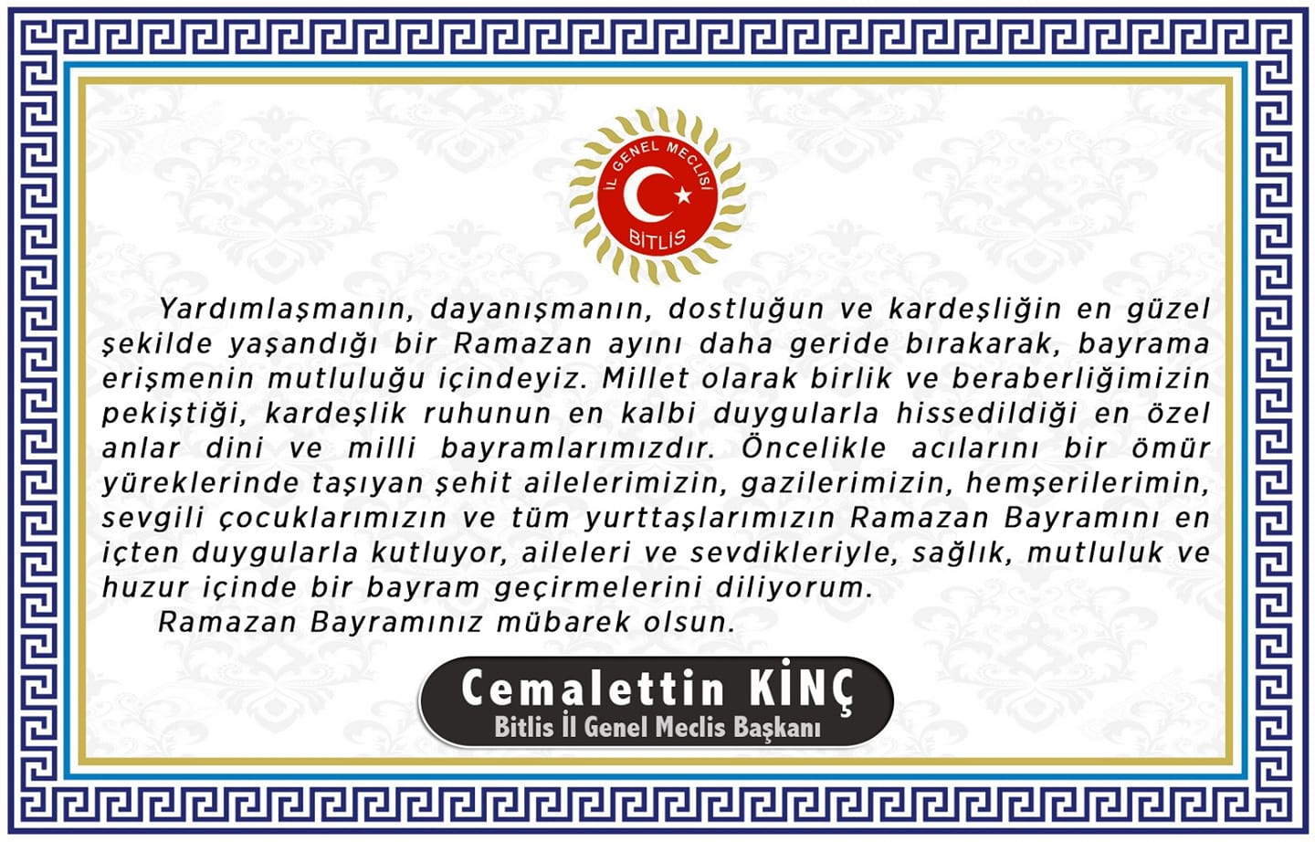 Bitlis İl Genel Meclis Başkanı Cemalettin Kinç Ramazan Bayramı Mesajı