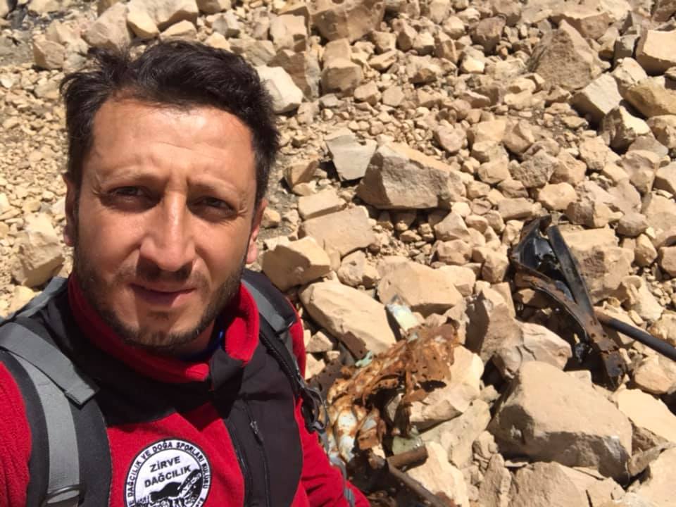 Süphan Dağı'nın zirvesinde, düşen uçağa ait parçaları fotoğrafladı