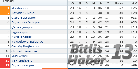 Tatvan Gençler Birliği İle Erganispor Maç Sonucu