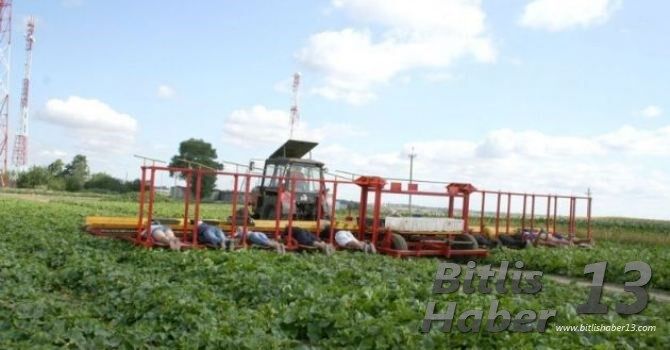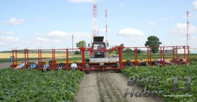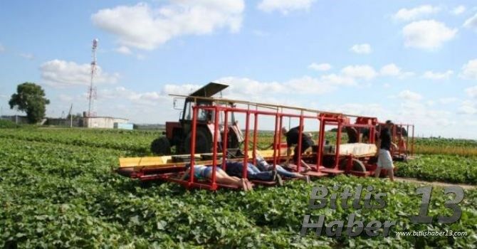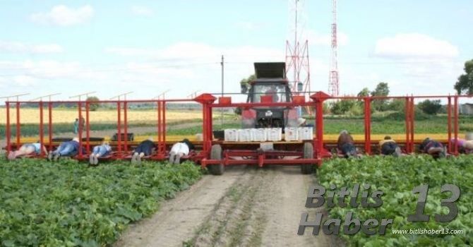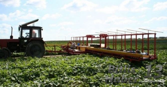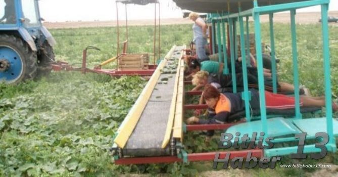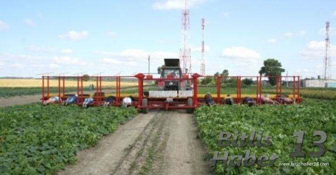 Traktörün hareket etmesiyle birlikte çalışanlar toplama işine başlıyor.