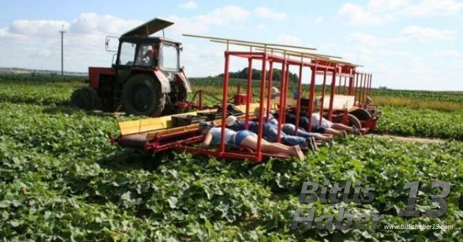 Bu teknikte, bir traktör salatalık tarlasının ortasındaki bir yol boyunca sürülüyor.