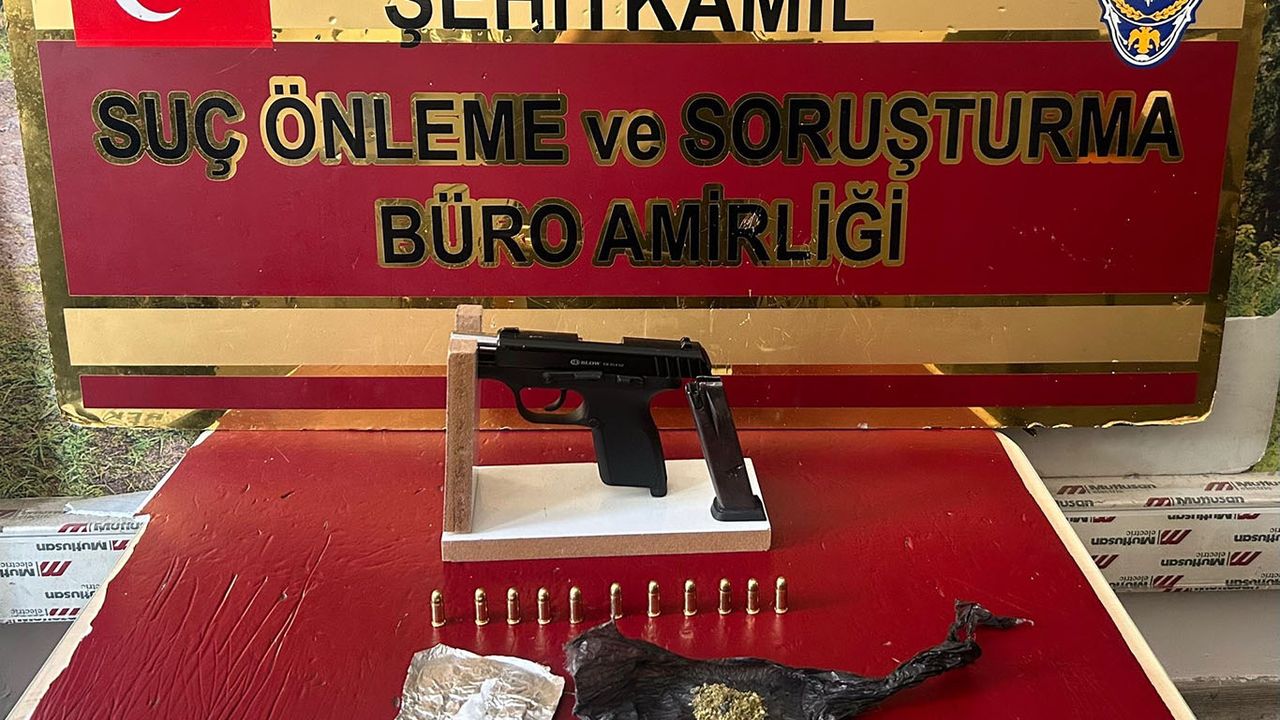 Operasyon sırasında yapılan aramalarda 1 adet ruhsatsız tabanca, 11 adet fişek ve bir miktar uyuşturucu madde ele geçirildi.