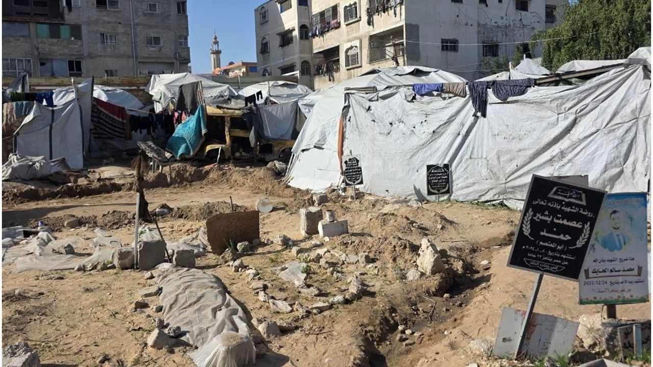 Yer kalmayan barınaklara alternatif bulamayan aileler, mezar taşlarının arasında kurdukları ilkel barınaklarda hayatta kalmaya çalışıyor.