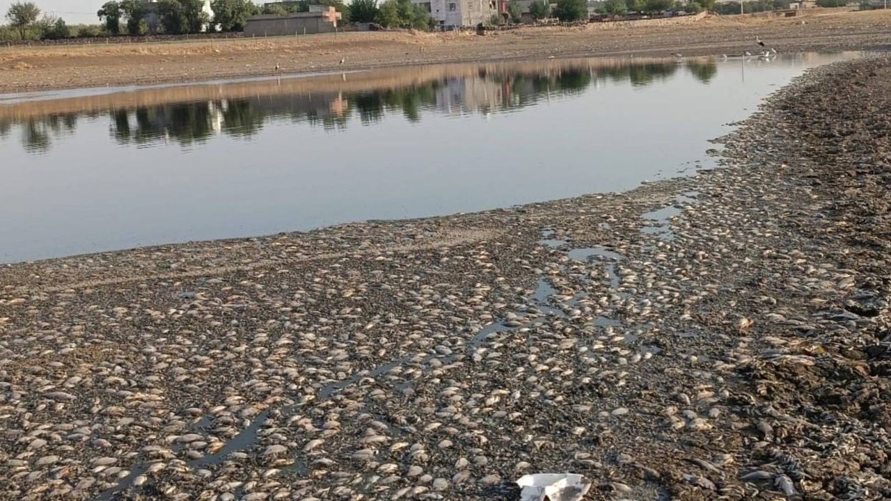 Mardin’in Mazıdağı ilçesinde bulunan gölette kuraklık nedeniyle su çekilince binlerce balık telef oldu.