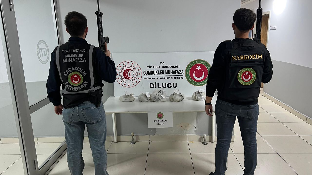 Edinilen bilgilere göre, Dilucu Gümrük Muhafaza Kaçakçılık ve İstihbarat Müdürlüğü ekipleri tarafından yapılan risk analizi ve saha çalışmaları sonucunda İran’dan Türkiye’ye giriş yapan 23BM910/75ZA119 plakalı çekici ve dorse aracı kontrol altına alındı. X-Ray taramasında şüpheli yoğunluk tespit edilmesi üzerine narkotik dedektör köpeğiyle yapılan detaylı aramada, aracın stepnesine gizlenmiş 5 paket içerisinde alüminyum folyoya sarılı toplam 4 kilo 980 gram eroin bulundu.