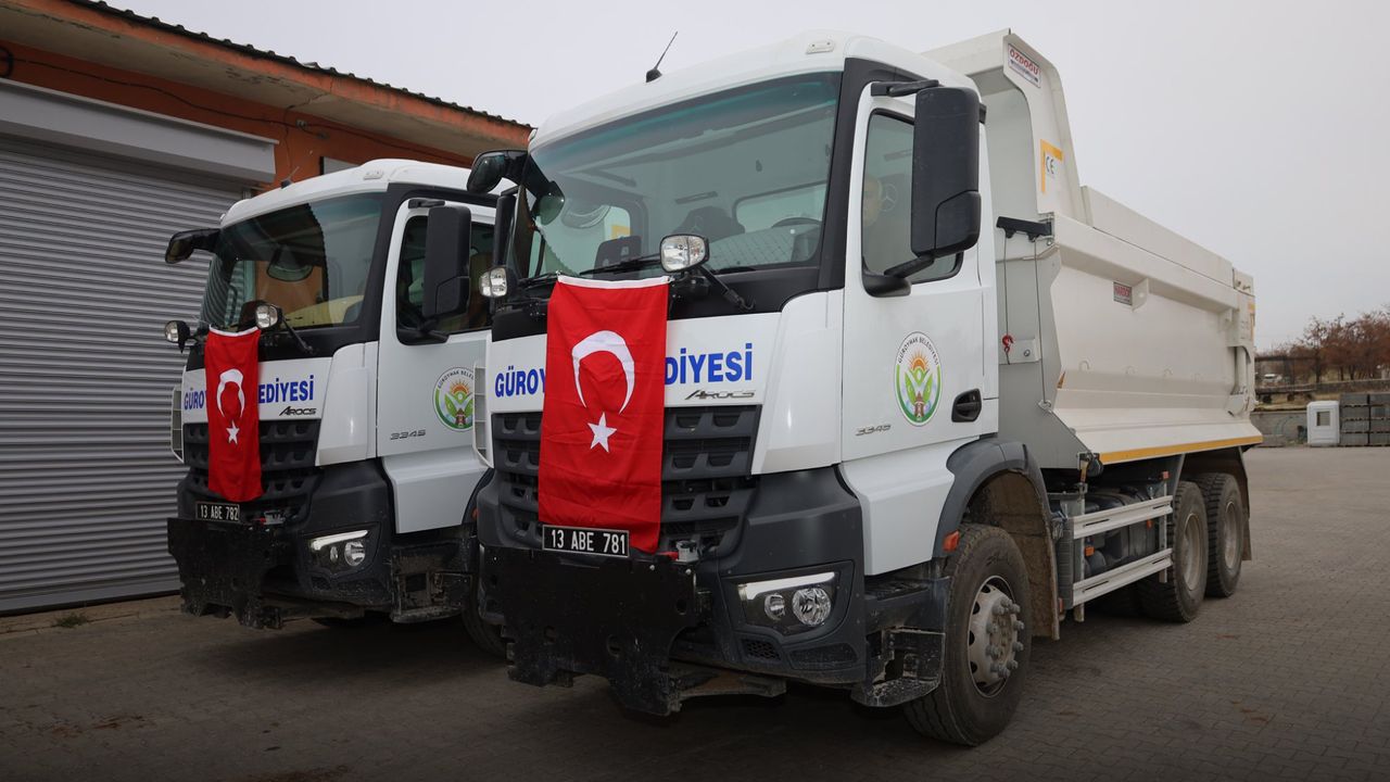 Güroymak Belediyesi, yaklaşan kış mevsimi öncesi karla mücadele çalışmalarını güçlendirmek amacıyla araç filosunu genişletti. Belediye, kar küreme aparatıyla yol temizliği yapabilen 2 adet damperli kamyonu daha bünyesine kattığını duyurdu.