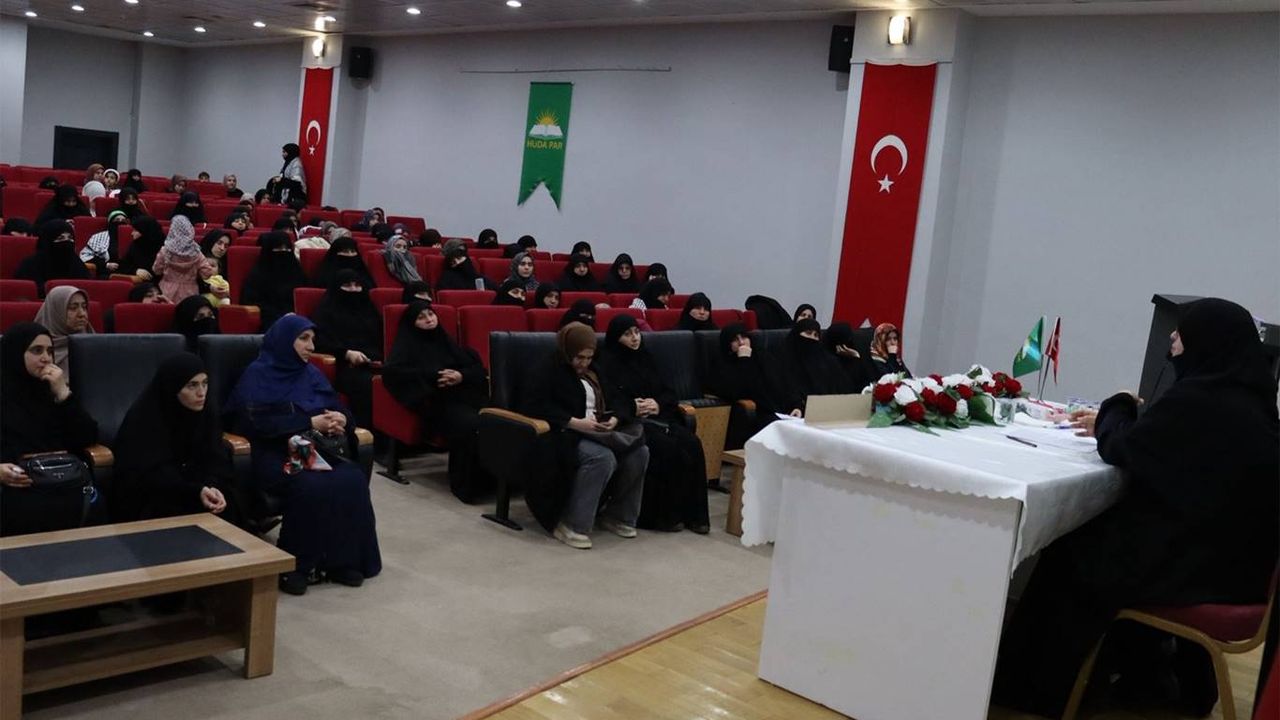 HÜDA PAR Aile Başkanı Aynur Sülün, Partisinin Muş Kadın Kolları Başkanlığı tarafından Öğretmenevi Konferans Salonu’nda düzenlenen “İlahi Rızaya Dayalı Tesettür” programına katıldı. Sülün, “Tesettür, bedeni örttüğü gibi kalbi de muhafaza eder. Aile yapısını, mahremiyeti ve ahlakı korur.” ifadelerini kullandı.