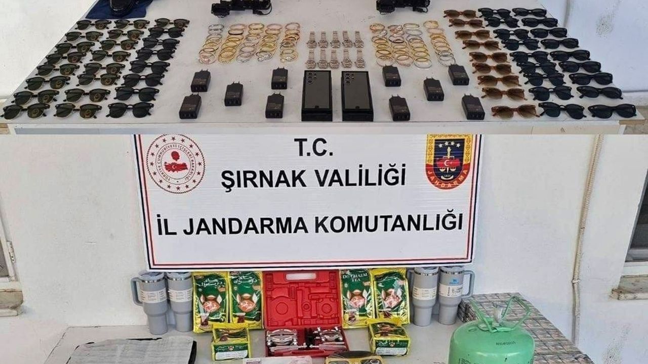 Şırnak Valiliği tarafından yapılan açıklamada, operasyonlar kapsamında farklı şahıslara ait ev, eklenti ve araçlarda yapılan aramalarda şu malzemelere ulaşıldığı bildirildi: 1 gram kubar esrar, 1 adet sentetik ecza, 64 elektronik sigara, 12.963 bandrolsüz sigara, 12 kilogram çay, 30 kilogram nargile tütünü, 360 puro, 155 cep telefonu, 78 termos, 376 oyuncak, 2.009 muhtelif inşaat malzemesi, 91 ev ve büro eşyası, 127 muhtelif el aleti, 68 kozmetik eşya, 158 süs eşyası, 70 tıbbi malzeme ve 77 mutfak eşyası.