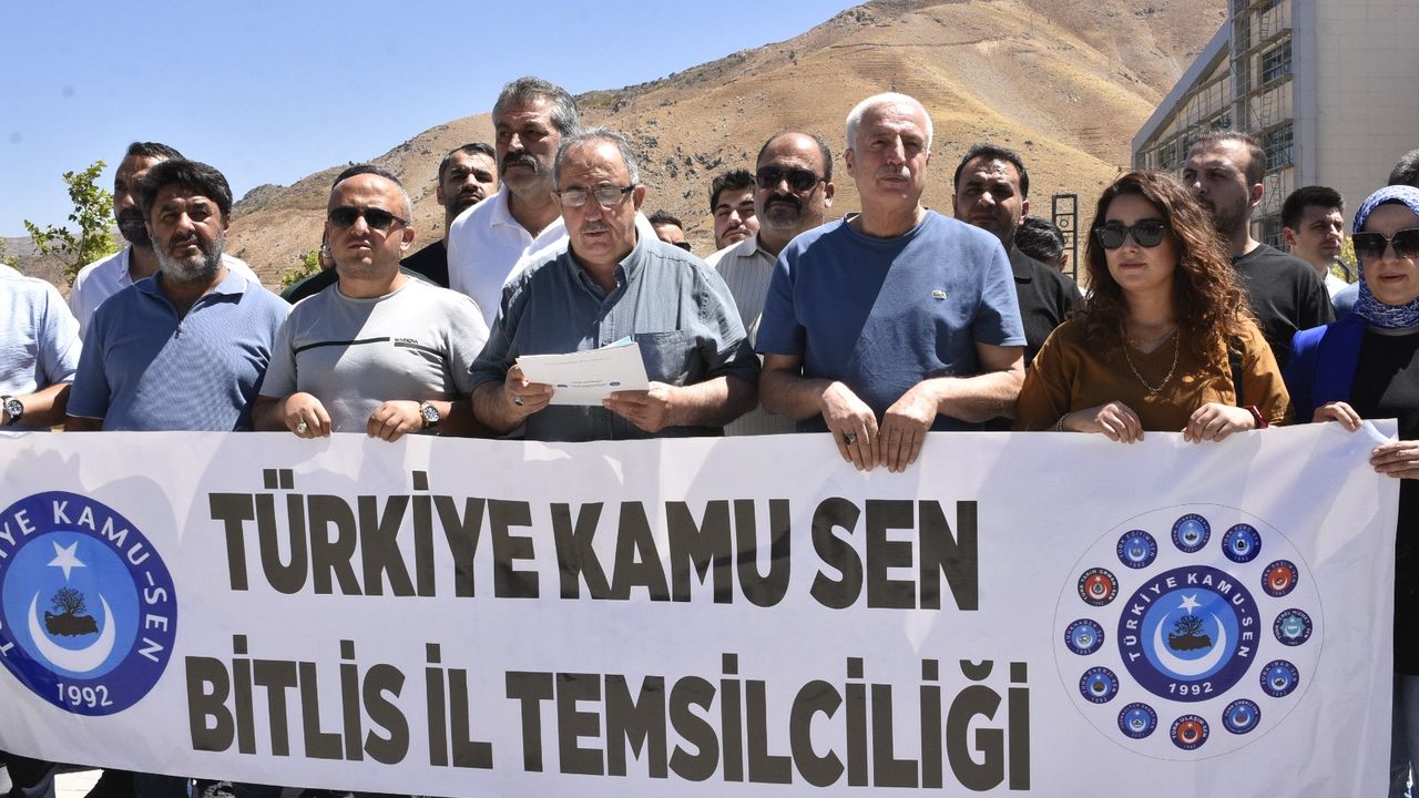 Toplanan grup adına basın açıklamasını okuyan Kamu-Sen Bitlis İl Temsilcisi Cevdet Uçak, Kamu İşveren'in sunduğu teklifin hakkaniyetten uzak olduğunu belirtti.
