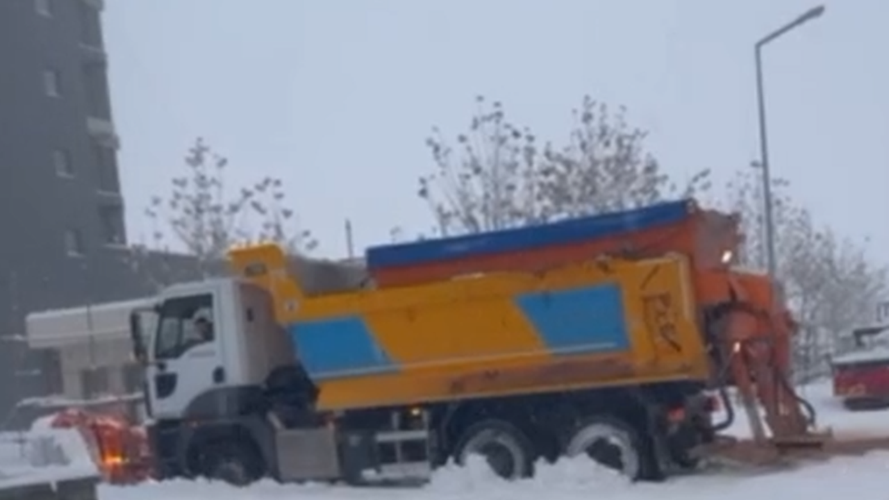 Amatör kameralarla kaydedilen görüntülerde, karla mücadele çalışmaları kapsamında sahada görev yapan bir kar küreme aracının yoğun kar birikintisi nedeniyle ilerleyemediği görüldü. Görüntülerde, küreme aracının yola çıkmak için patinaj yaptığı, bir süre bulunduğu noktada hareketsiz kaldığı anlar yer aldı.