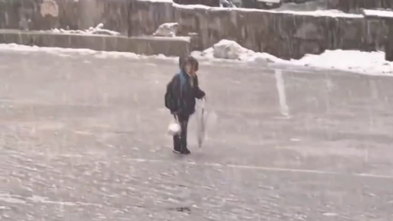 Bitlis’in Mutki ilçesindeki Atatürk İlkokulu’nda kaydedilen görüntülerde, soğuk havaya ve kar yağışına aldırış etmeden İstiklal Marşı’nı coşkuyla söyleyen bir öğrencinin o anları izleyenleri duygulandırdı.